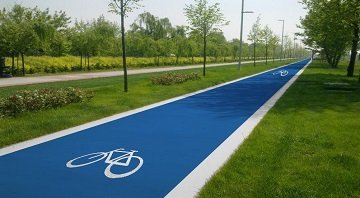 - Uluslararası standartlara uygun renk kodları ile (genellikle mavi/yeşil tonlar tercih edilerek) bisiklet yolu zemin kaplaması