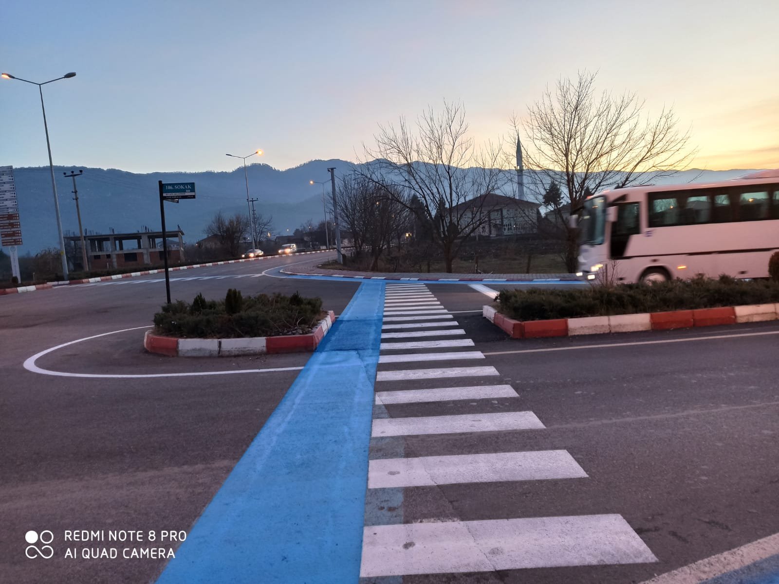 - Araç yolu ile kesişen geçiş noktalarında yaya geçidi, uyarı çizgileri ve gerekli levhalarla güvenli geçiş kurgusu